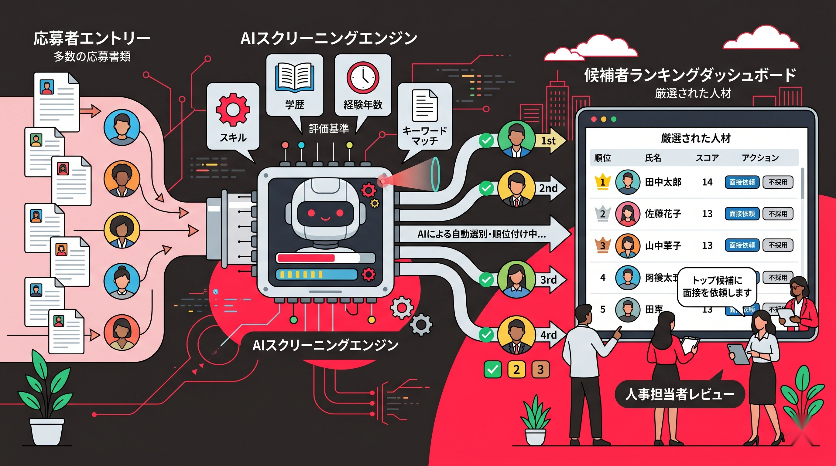 確かに、最終的な合否判断や面接でのコミュニケーション評価は、人にしかできない領域です。しかし、書類スクリーニングという工程は、本当に「人がやるべき仕事」なのでしょうか。