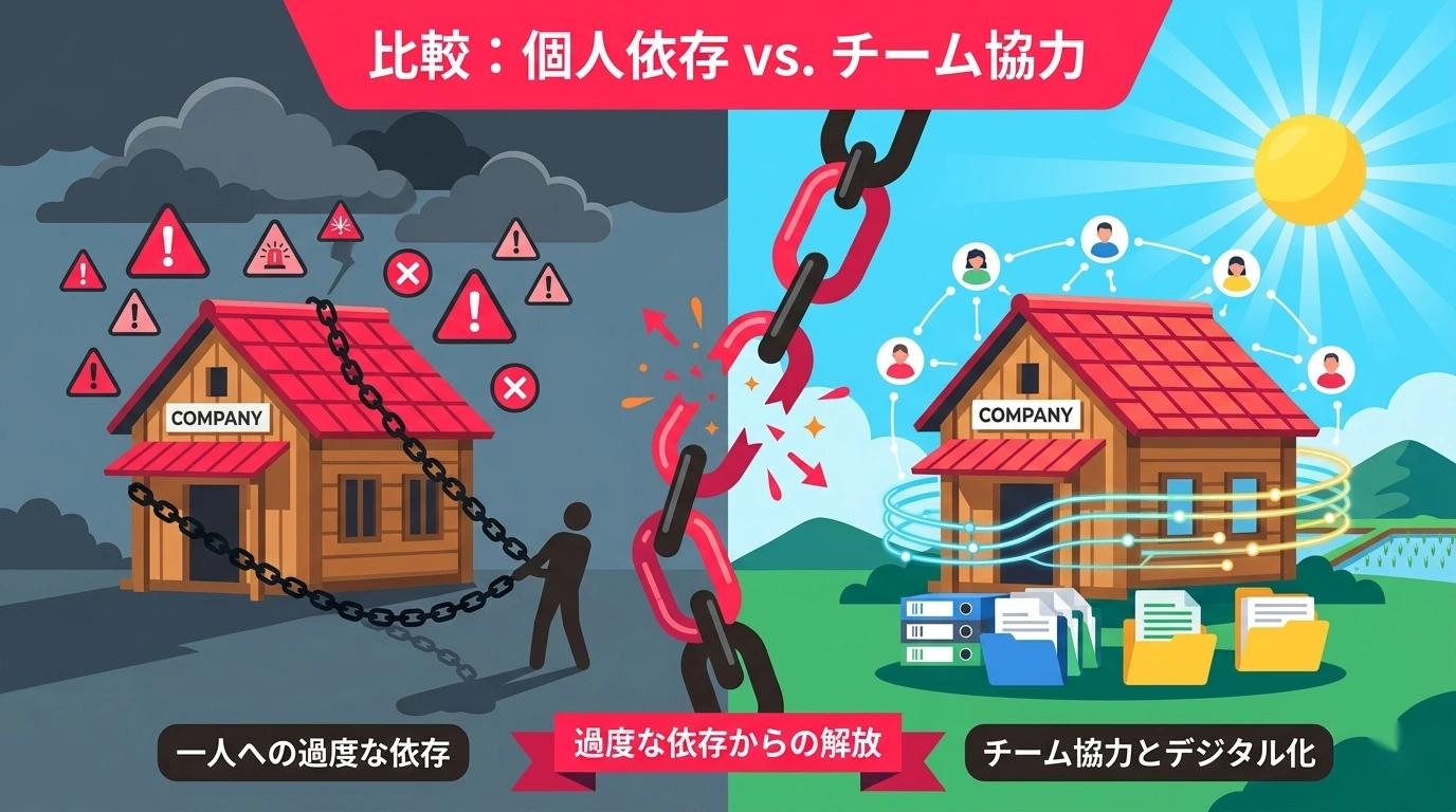 属人化は、IT活用を阻む最大のボトルネックであり、地方企業が最も見落としがちなリスクです。