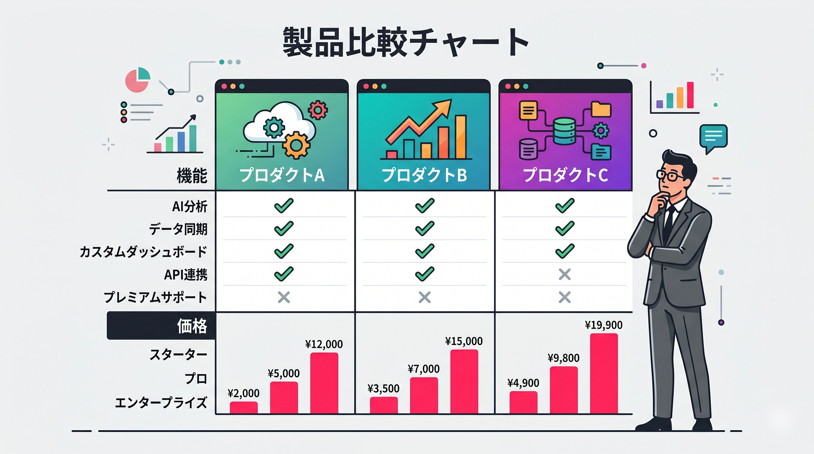 一方で、無料プランや低価格プランから始めて、必要に応じてアップグレードしていけば、はるかに少ないコストで同等の効果を出せます。問題は、その判断をどう下すかです。