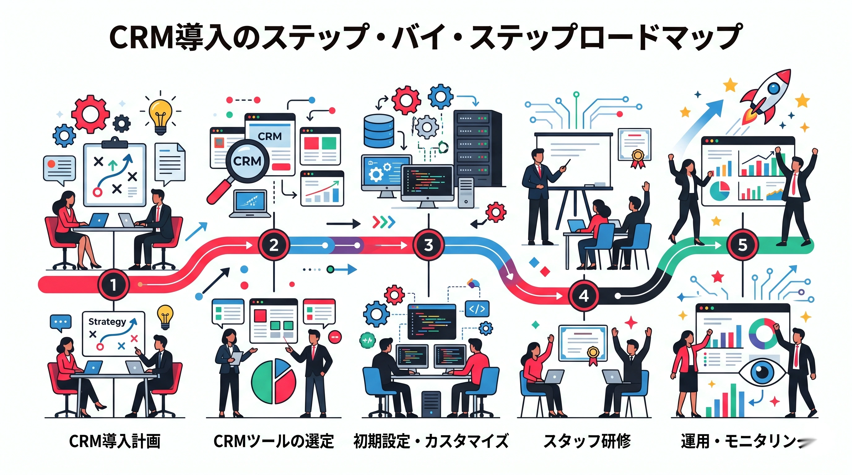 この差を生むのは、選定プロセスに十分な時間をかけるかどうかです。ベンダーのデモを受けて1〜2週間で決めてしまうのではなく、自社の営業プロセスを棚卸しし、小さく始めて段階的に広げていく——この進め方が結果として最もコストを抑えます。