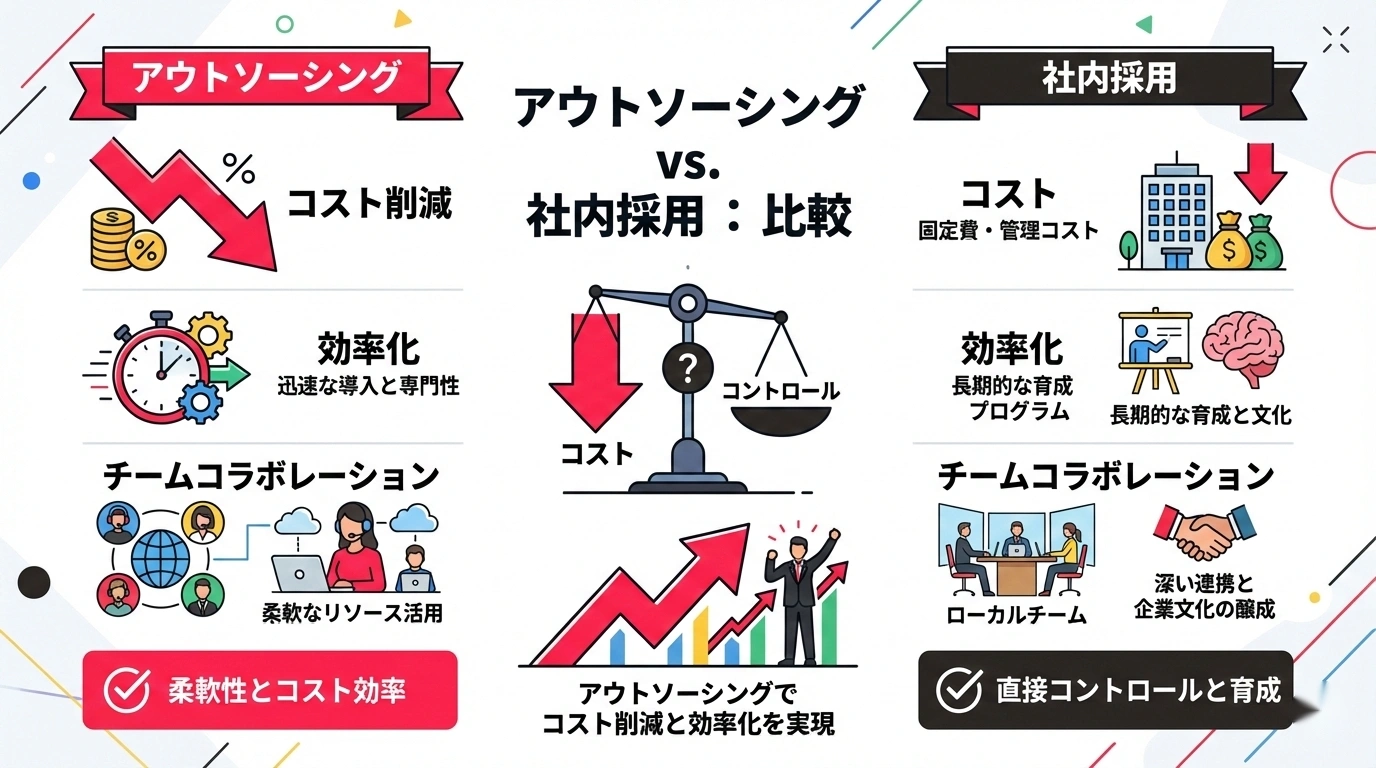 もちろん、長期的に活躍してくれる人材を採用できれば、このコストは十分に回収できます。しかし、「採用できない」「採用してもすぐ辞める」という現実に直面しているのであれば、外部パートナーの活用や業務委託など、別の選択肢を真剣に検討する価値があります。