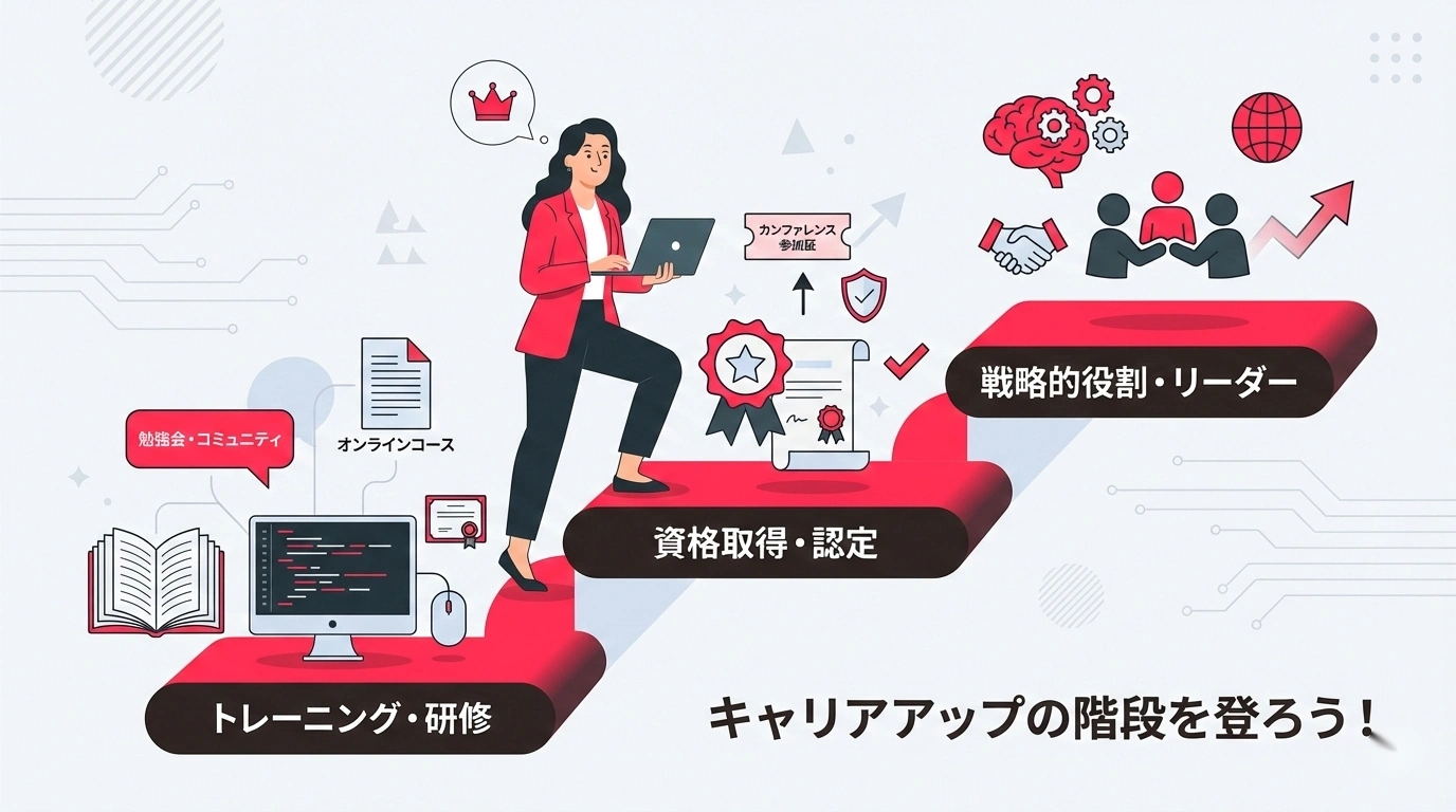 業務に関連するIT資格(情報処理安全確保支援士、AWS認定、Google Cloud認定など)の取得費用を会社が負担する制度を作りましょう。資格手当を設定するのも効果的です。