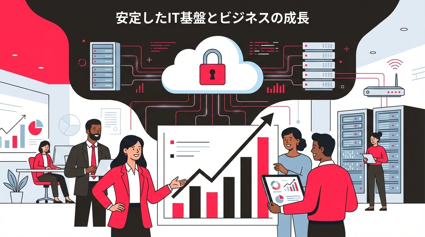 IT担当者の採用・育成にかかるリソースを、本業の成長投資に振り向けることができます。特に中小企業においては、限られたリソースをどこに集中させるかが成長の鍵となります。