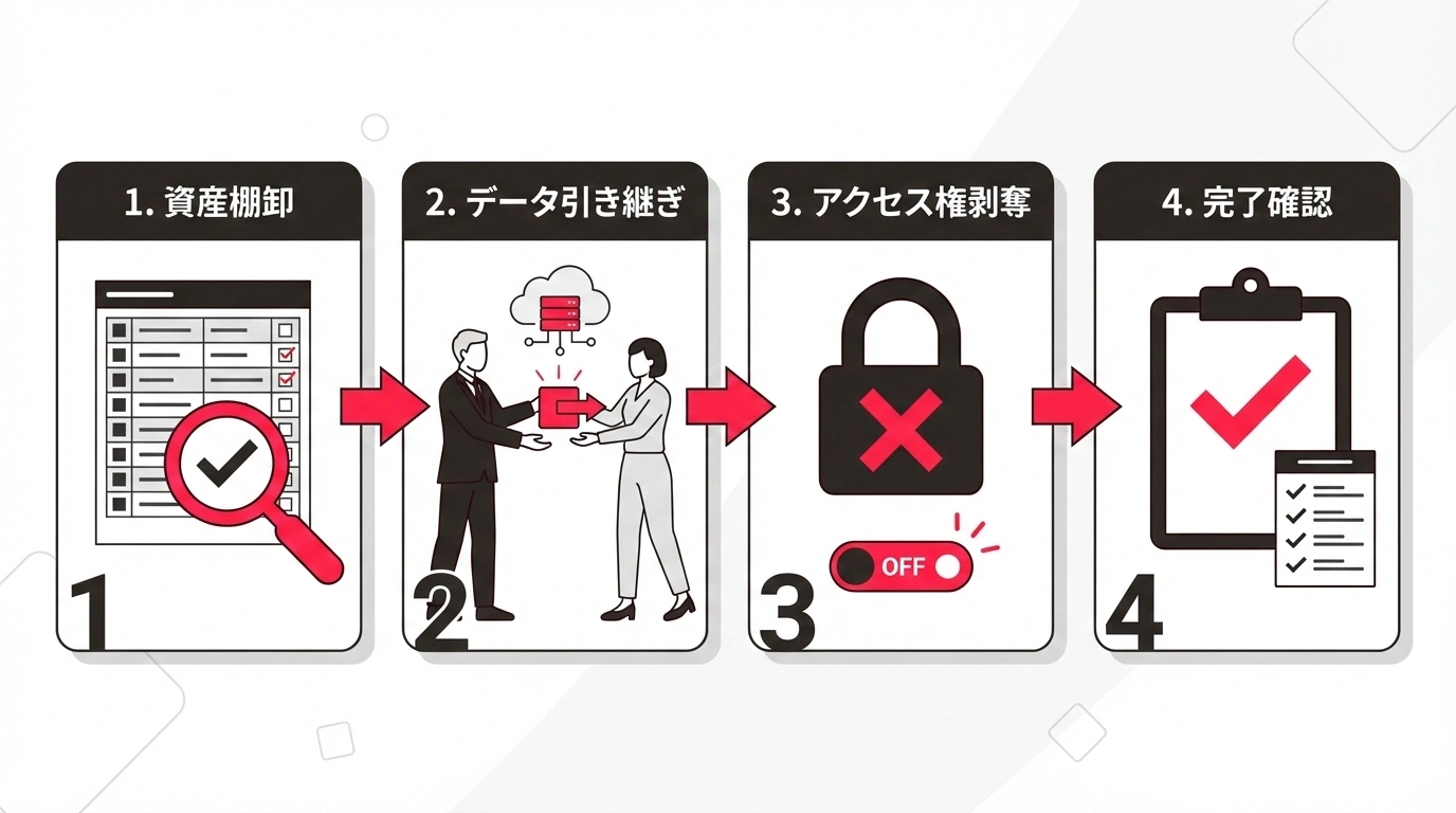 退職手続きの4ステップ:棚卸し・引き継ぎ・無効化・フォローアップ