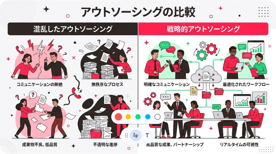 外注は本来、社内リソースの不足を補い、専門性を活用するための戦略的な手段です。しかし「丸投げ」と「活用」では、結果がまったく違います。この記事では、その決定的な違いと、失敗しないための具体的な方法を解説します。