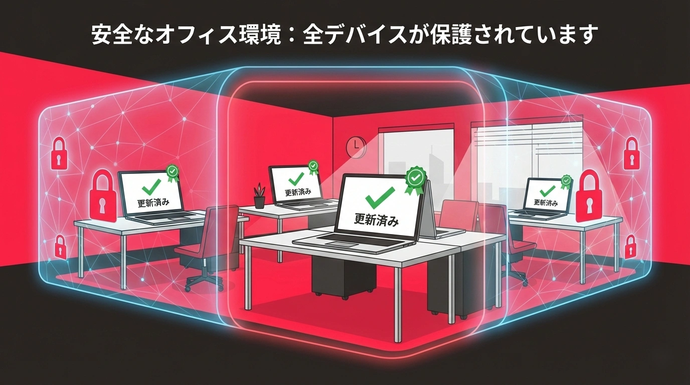 ③ 会社全体のPC管理を仕組み化する 従業員が5人以上いる場合、個人任せのアップデート管理には限界があります。IT資産管理ツールを導入するか、社内のDX推進として仕組み化することが重要です。